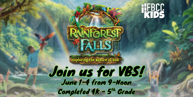 Mark your calendars for this year's VBS! Join us for Rainforest Falls from June 1-4 from 9 a.m. to noon! Each day, our children will learn new ways to explore ...